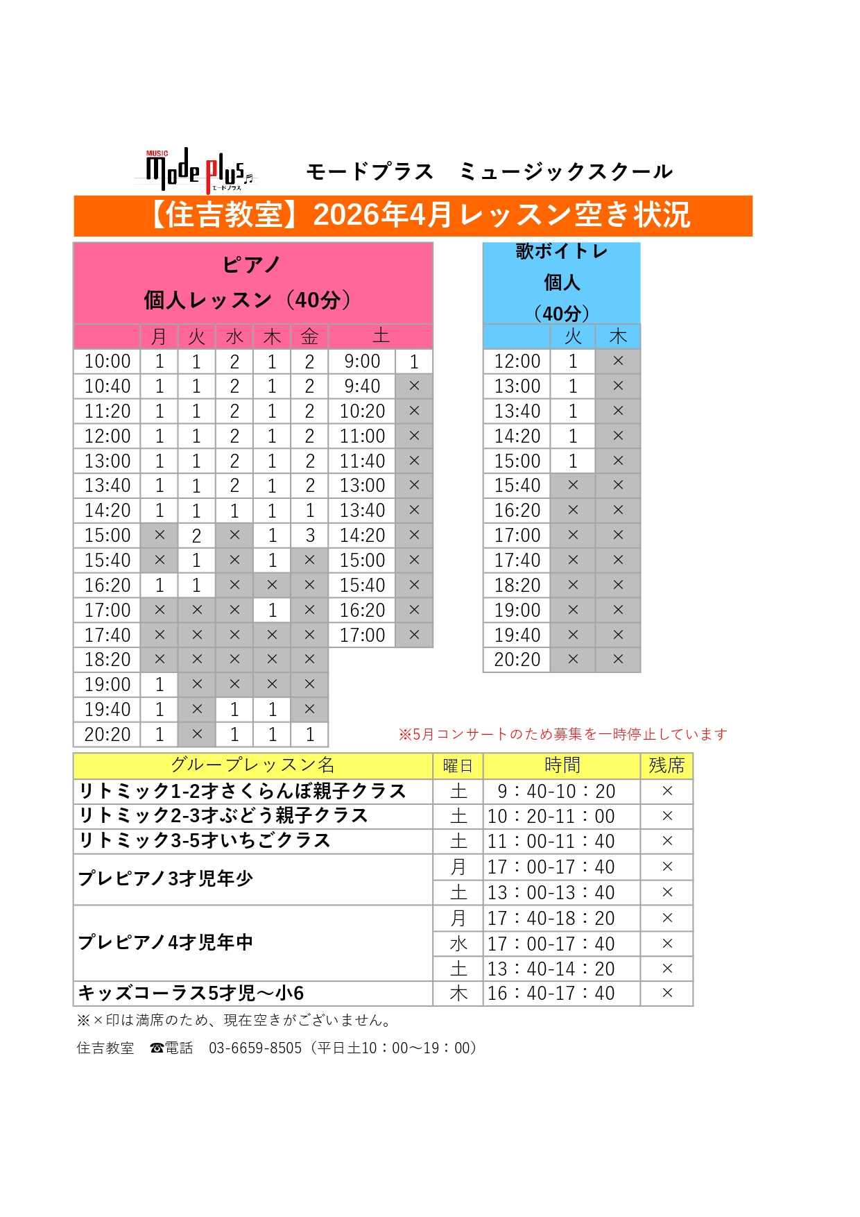 5月スプリングコンサートのため、体験レッスンを一時停止しております。